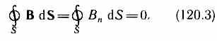 Итак, для потоков векторов В и Е сквозь замкнутую поверхность в вихревом и потенциальном полях получаются различные выражения (см. (120.3), (81.2)).