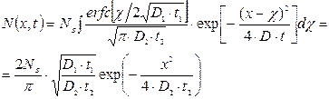 Если исходный профиль не Гауссов, то для вычисления результирующего профиля следует использовать формулу Пуассона. В частности, если на стадии загонки был сформирован профиль, описываемый erfc - функцией, то формула Пуассона запишется в следующем виде: