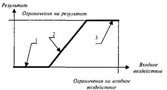 1 - порог нечувствительности, 2 - изменение результата от входного воздействия, 3 - ограничение результата при увеличении входного воздействия