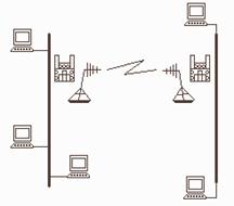 Другой важной областью применения беспроводных сетей является организация связи между удалёнными сегментами локальных сетей при отсутствии инфраструктуры передачи данных (кабельных сетей общего доступа, высококачественных телефонных линий и др.), что типично для нашей страны. В этом случае для наведения беспроводных мостов между двумя удалёнными сегментами используются радиомосты с антенной направленного типа.