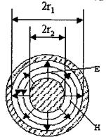 Коаксиальные волноводы. На практике наибольшее распространение имеет круглый коаксиальный волновод, или просто коаксиал, поперечное сечение которого показано на рис. 1.29. Пространство между внешним и внутренним проводниками может быть заполнено воздухом или другим диэлектриком с относительной диэлектрической проницаемостью e r. Основной волной является волна типа Т (поперечная электромагнитная волна), структура силовых линий которой показана на рис. 1.25. Волновое сопротивление для T -волны определяется формулой