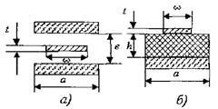 Рис. 1.27.Поперечные сечения полосковых линий: а – симметричной; б – несимметричной
