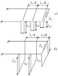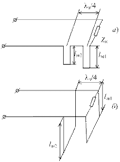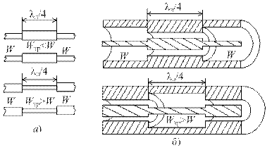 Рис. 2.3. Четвертьволновые трансформаторы: а) – на двухпроводной линии б) –