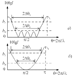 где h, l – масштабные коэффициенты; Тn – полином Чебышева первого рода n -го порядка; n – число ступенек трансформатора. Типичный график чебышевской характеристики при n = 3 представлен на рис. 2.11, a, где b п – затухание в полосе пропускания 2Dqп, b 3 – затухание в полосе заграждения 2Dqз. Характерным для чебышевских характеристик является наличие равноамплитудных осцилляции, число которых n + 1 на единицу превышает число ступенек трансформатора.