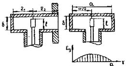 На рис. 3.8. представлен коаксиально-волноводный переход. Он предназначен для перехода от коаксиала с волной типа Т к прямоугольному волноводу с волной H 10. Обычно штырь, являющийся продолжением внутреннего провода коаксиала, располагают посредине широкой стенки волновода, а расстояние до короткозамыкающей стенки z 1, берут равным четверти длины волны в волноводе. Для обеспечения хорошего согласования необходимо также правильно выбрать высоту штыря l и его диаметр. Обычно берут l = l/4. Форма штыря и его диаметр существенно сказываются на полосовых свойствах перехода: чем толще штырь, тем шире полоса. При работе перехода вблизи штыря образуются все типы волн в прямоугольном волноводе. Кроме основной волны Н 10, они находятся в закритическом режиме, и их амплитуды экспоненциально убывают при удалении от штыря. Скорость убывания определяется индексами т и п, характеризующими каждый тип волны в волноводе. Расстояние z 2, от штыря до контактного фланца выбирается из условия уменьшения амплитуды высшей волны, ближайшей к основной волне Н 10, до требуемой величины. Ближайшей к основной высшей волной в таком переходе является волна H 30. Для уменьшения ее амплитуды в N раз величину z 2 следует выбрать из соотношения