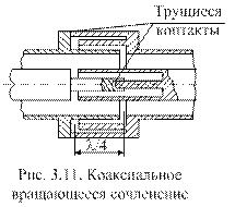 Основным элементом вращающегося сочленения коаксиального типа являются дроссельные канавки, обеспечивающие надежный электрический контакт между вращающимися коаксиалами (рис. 3.11). Назначение и принцип работы дроссельных канавок во вращающемся сочленении такие же, как и в дроссельно-фланцевом соединении. Трущиеся контакты располагаются в нулях продольных токов, что достигается выбором глубины дроссельных канавок порядка четверти длины волны. При этом дроссельные канавки располагаются как во внешнем, так и во внутреннем проводниках коаксиала.