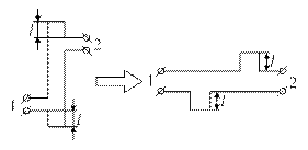 Эквивалентная схема вращающегося сочленения с гасящими объемами показана на рис. 3.13. Длина шлейфов l выбирается таким образом, чтобы для волны E 01 линия от клемм 1к клеммам 2была бы прозрачной, для волны H 11 имела бы разрыв в месте подключения шлейфов. Это обеспечивается выполнением равенств l = l E 01/2, l = 3l H 11/4. Первое из этих равенств обеспечивает нулевое входное сопротивление шлейфов для волны E 01а второе – бесконечное входное сопротивление для волны