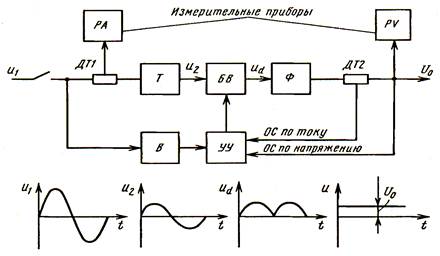 Основными элементами ВУ являются трансформатор, выпрямляющее звено и сглаживающий фильтр.