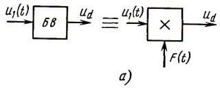 С позиций математики работу блока выпрямления можно представить в виде перемножения переменного напряжения u1(t), поступающего на вход блока, на единичную функцию переключения F(t).