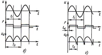 ), то изменится ud(t) и его постоянная составляющая (рис. г). Такая идея используется при построении управляемых выпрямителей. Очевидно, в этом случае полупроводниковые приборы БВ должны быть управляемыми.
