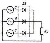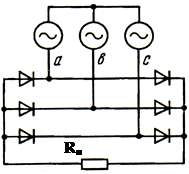 Трехфазная двухполупериодная схема выпрямления дополняется анодной группой диодов.