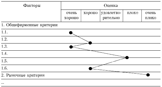 Составление перечня критериев и получение соответствующих ответов на поставленные вопросы являются достаточно простым методом оценки проектов. Он может быть представлен в виде профиля проекта, где каждый фактор получает стандартную оценку (табл. 7.2).