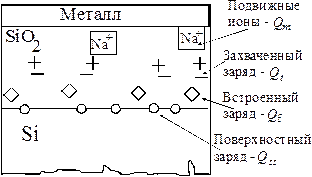 Qf – заряд фиксированный вблизи поверхности (обмен зарядами этого типа не может происходить так же быстро, как для Qss).