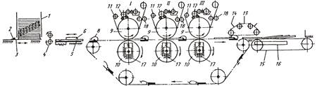 Рис. 63. Технологическая схема трехсекционного ротационного пресса