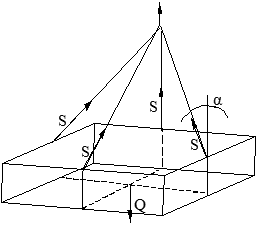 | На рисунке показана расчетная схема. Величину допускаемого натяжения чалочных стропов S в зависимости от угла наклона их к вертикали α определяют по формуле: где Q – вес груза, n – число ветвей чалочного каната, α – угол наклона каждой ветки чалочного каната к вертикали, град | |||||||