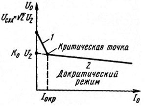 Обычно стремятся обеспечить “докритический ” режим (участок 2), в котором зависимость напряжения U0 от тока нагрузки выражена слабо. Условием этого является выполнение