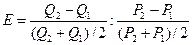 Метод дуговой эластичности применяется, когда практические наблюдения не позволяют выявить функциональную зависимость спроса и предложения, поэтому по статистическим данным рассчитывается коэффициент эластичности между двумя точками линии спроса или линии предложения: