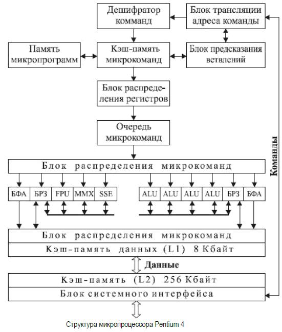 Структурная схема процессора Pentium IV показана на рисунке.