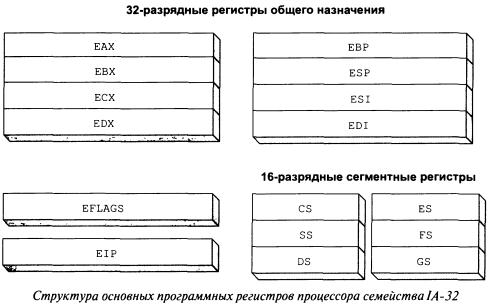Структура основных программных регистров (Program execution registers) процессора семейства IA-32 и их названия, определенные специалистами фирмы Intel.