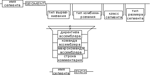 Синтаксическое описание сегмента на ассемблере представляет собой конструкцию: