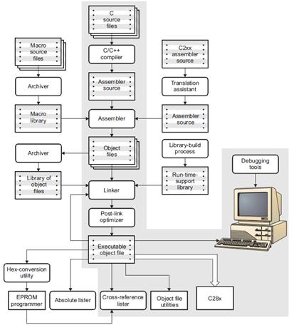 Основным продуктом процесса разработки является модуль, который может выполняться устройством. Вы можете использовать одно из различных инструментальных средств отладки для обогащения и корректирования вашего программного кода. Доступные продукты включают: программный симулятор с тщательно разработанными инструкциями и синхронизацией, XDS эмулятор.