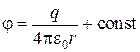 точечного заряда направлены по лучам, исходящим из заряда. Поэтому, эквипотенциальные поверхности перпендикулярны в каждой точке этим линиям, т.е. представляют собой сферы. Потенциал в данной точке зависит только от одной переменной - расстояния от этой точки до заряда. Если обозначить это расстояние через r, то потенциал поля точечного заряда получается путем интегрирования (23.7) или одного из соотношений (23.8) с использованием соотношения (1-7) для напряженности