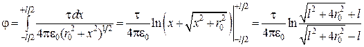 Потенциал, создаваемый заряженным стержнем найдем согласно формуле (23.12а), интегрируя (23.13):