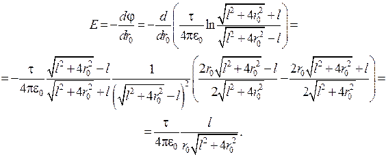 Потенциал точек, лежащих на оси, проходящей через середину стержня, как видно их этого равенства, зависит только от одной координаты r 0. Напряженность поля и силу, действующую на заряд, найдем, используя одну из формул (23.8), дифференцируя полученное выражение для j по координате r 0: