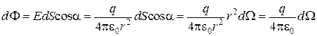 через любую поверхность S равен опять произведению заряда на полный телесный угол: