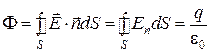 поток вектора напряженности поля через любую замкнутую поверхность равен полному заряду внутри этой поверхности, деленному на e0.