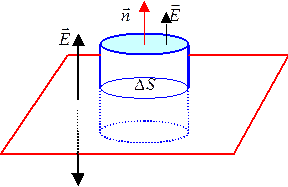Пусть плоскость заряжена равномерно с поверхностной плотностью заряда s (Кл/м2). Вектор напряженности электрического поля перпендикулярен плоскости и нормали