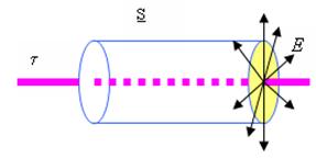 Следовательно, для определения поля добно выбрать цилиндрическую поверхность с осью, совпадающей с осью нити. Используя теорему Гаусса, имеем:
