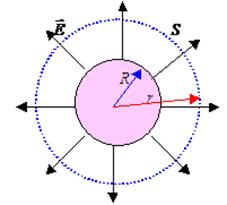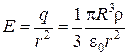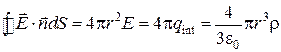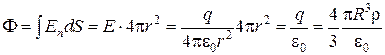 Пусть имеем шар радиуса R, заряженный равномерно по всему объему с плотностью заряда r. Из соображений симметрии электрическое поле направлено радиально