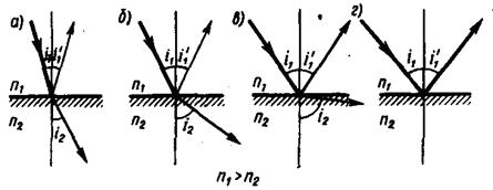 Угол iпрназывается предельным углом, если при углах паденияi1 > iпрвесь падающий свет полностью отражается (г).