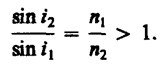 Если свет распространяется из среды с большим показателем преломления n1 (оптически более плотной) в среду с меньшим показателем преломления n2 (оптически менее плотную) (n1>n2), например из стекла в воду, то