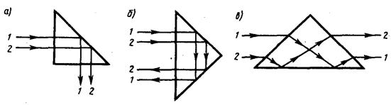 Явление полного отражения используется в призмах полного отражения, позволяющих: а) повернуть луч на 90°; б) повернуть изображение; в) обернуть лучи.