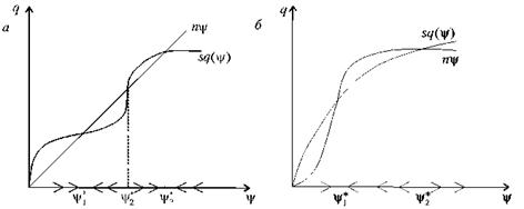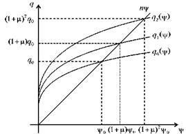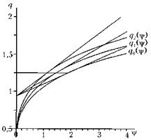 смещаются так, что равновесные значения q и V|/ растут с одинаковым темпом.