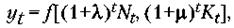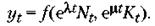Во-вторых, экзогенный технический прогресс можно представить в виде условного роста во времени объемов применяемого труда и капитала: