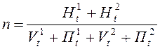 П1t +П2t = m1t + m2t = m’t(V1t +V2t),