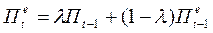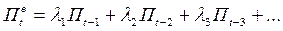 Пt - инфляция в период t, Пet- ожидаемая инфляция в период t,