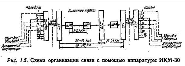 ЦСП ИКМ-30 предназначена для формирования абонентских и соединительных линий ГТС и пригородной связи по методу ВРК с ИКМ; рассчитана на работу с симметричными кабелями типа Т или ТПП с диаметром жил 0,5-0,7мм. Система работает по 4-хпроводной схеме с использованием одной пары жил для передачи и одной пары для приема. Передача может осуществляться как по однокабельной, так и по двухкабельной системам. Однако, если прием и передача ведутся по одному кабелю, то жилы предварительно необходимо подобрать по переходному затуханию. При наличии соответствующего оборудования сопряжения и линейного тракта каналоформирующая аппаратура ИКМ-30 может использоваться для систем передачи по оптическим кабелям и РРЛ.