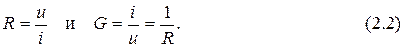 в первом уравнении выражений (2.1) называют электрическим сопротивлением, а обратную к нему величину G – проводимостью электрической цепи соответственно: