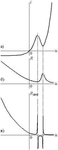 Дифференциальное сопротивление может быть как положительным, так и отрицательным. Отрицательное сопротивление имеет место на спаде вольтамперной характеристики нелинейного элемента, например, как у диода Ганна (рис. 2.3).