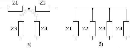 Разные ветви, присоединённые к одной паре узлов, называют параллельными. Параллельные ветви находятся под одним и тем же напряжением.