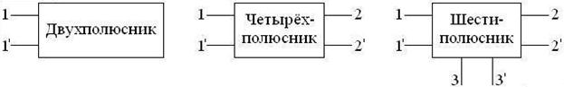 Рис. 4.4. Двухполюсник, четырёхполюсник и шестиполюсник