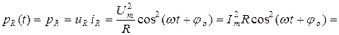 Найдём мгновенную мощность в резисторе, используя формулы (1.8), (4.12) и (4.13):