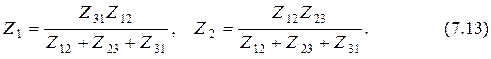 Пусть между выводами 1, 2 и 3 электрической схемы включены комплексные сопротивления