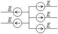 Встречным включением одинаковых источников эдс называют такое соединение, при котором источники соединены друг с другом выводами, имеющими одинаковый потенциал (рис. 7.4).