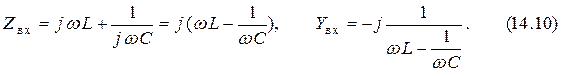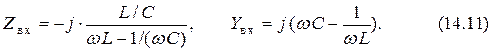 2. Параллельное соединение индуктивности и ёмкости (рис. 14.8, а) характеризуется входным сопротивлением или проводимостью: