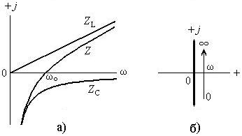 -цепи имеет ёмкостный характер (рис. 14.7, а), так как сопротивление индуктивности до некоторой частоты (частоты резонанса